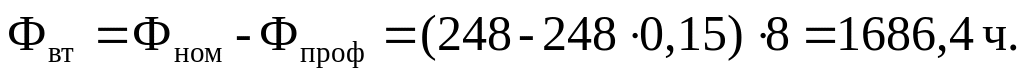 Фвт=Фном - Фпроф где Фном - номинальный фонд времени работы вычислительного комплекса; Фпроф - годовые затраты времени на профилактические работы (15% от Фном).