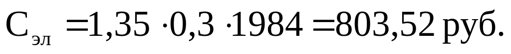 где Сэ-э - стоимость 1кВт за час электроэнергии (1,35 руб); W - мощность, поглощаемая комплексом (0,3 кВт); Фвт - годовой плановый фонд времени работы вычислительного комплекса (1984 ч).