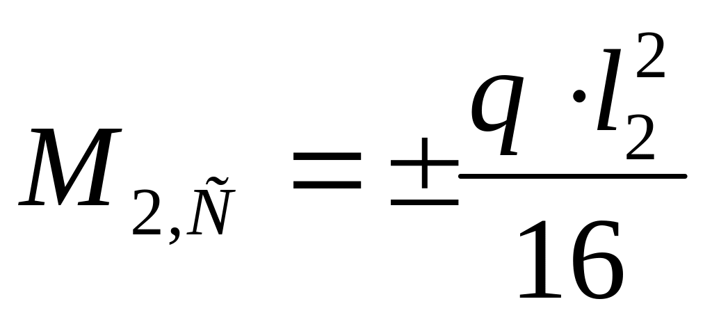Розрахункова схема балки (рис. 6) передбачається нерозрізною з рівними прогонами або з такими, що відрізняються не більше ніж на 20%. Розрахункові згинальні моменти в прольотах та біля граней опор з урахуванням перерозподілу згинальних моментів внаслідок пластичних деформацій розраховуються за формулами: