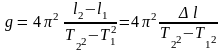 Применим эту формулу в лабораторной работе. Из нее следует, что для опытного определения ускорения свободного падения достаточно экспериментально найти изменение длины маятника ∆l и периоды колебаний Т1 и Т2.