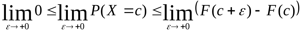 P(X=c)≤P(c≤X<c+ε)=F(c+ε)F(c).