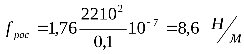 fрас – изгибающая сила, приходящаяся на единицу длины средней фазы, Н/м;