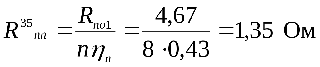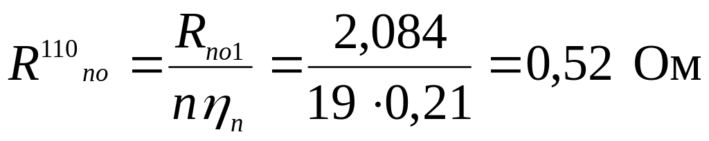 где п=0,21 – коэффициент использования, учитывающий взаимное влияние полос при растекании с них тока.