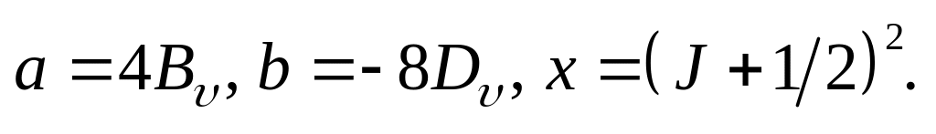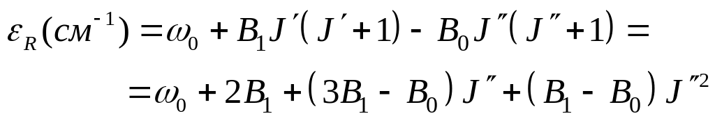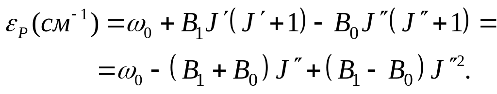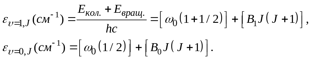 В этом приближении колебательно-вращательная энергия молекулы при разных значениях J для первого ( = 1) и нулевого ( = 0) колебательных уровней равна, соответственно: