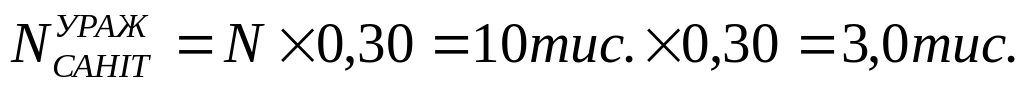 2) За відомим ступенем ураження населеного пункту з наведеної вище Табл. 8-1.1 розраховуємо загальну кількість ураженого населення міста