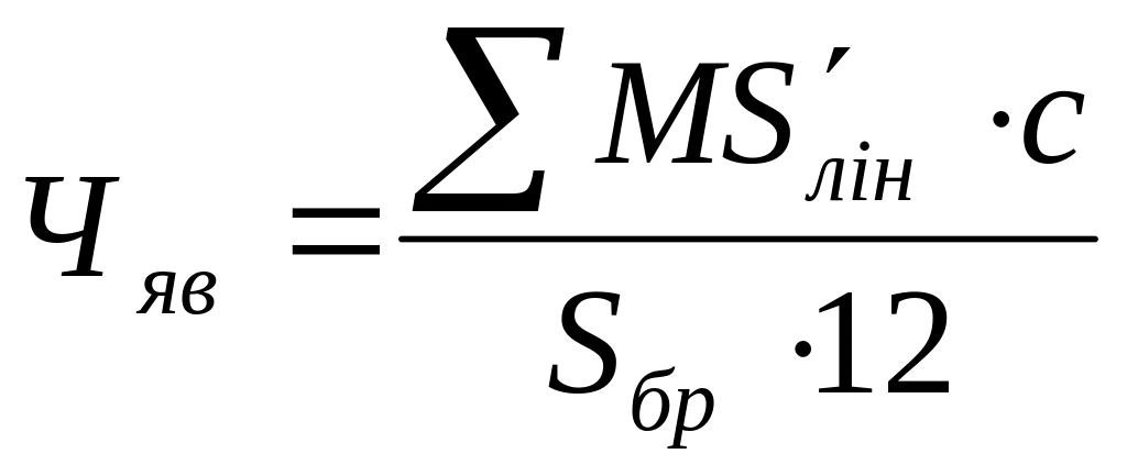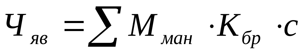 3.1.2 Планування явочної чисельності маневрових локомотивних бригад (ст. 98) виконують згідно з кількістю маневрових локомотивів, кількістю бригад, обслуговуючих один локомотив при цілодобовій роботі (Кбр= 24·30,1:169=4,3), при роботі однієї особи (с=1) та розраховують за формулою