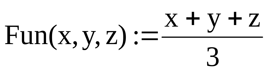 Определение функции пользователя. Для определения функции пользователя используется оператор присвоения. В левой части оператора записывается имя функции, вслед за которым в круглых скобках - список аргументов. В правой части оператора присвоения записывается выражение, соответствующее данной функции.