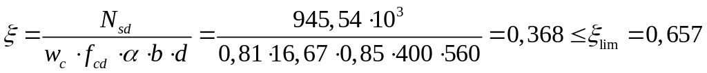 где Ned = Nsd = 945,54 кН в сечении 2-2 первой комбинации Msd,min