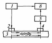1-генератор, 2-излучатель, 3-ОК,4-