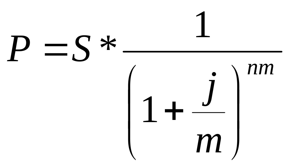 При начислении процентов за m периодов в году расчет текущей стоимости можно производить по предыдущей формуле (31) или по формуле: