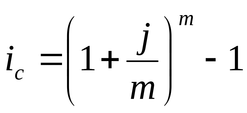 Кроме номинальной ставки существует эффективная процентная ставка. Она измеряет тот относительный доход, который получает владелец капитала в целом за год и определяется по формуле: