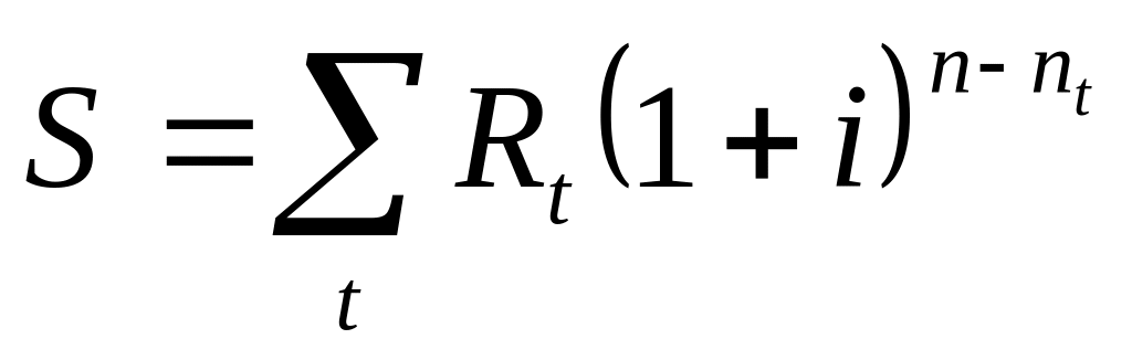 Наращенная сумма потока платежей в целом определяется следующим образом: