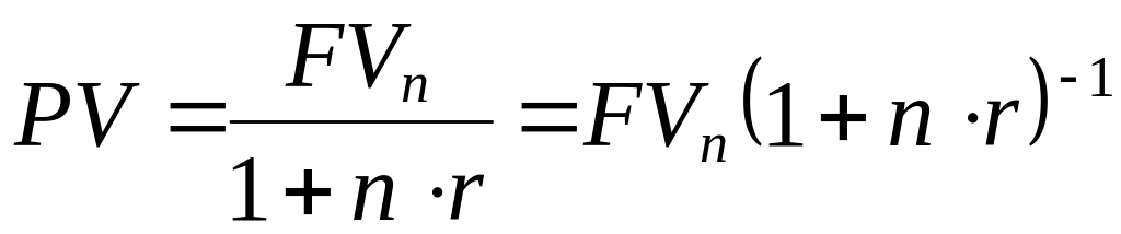 Дисконтування при простих відсотках здійснюється за допомогою формули, яка виходить шляхом звернення (3):
