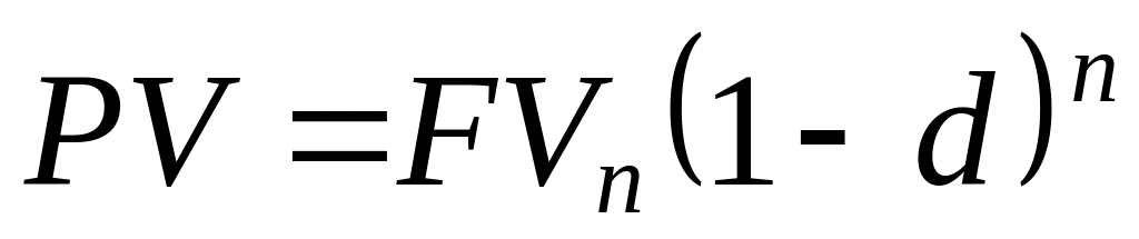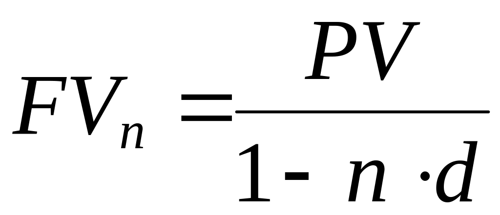 Звідси легко слід формула для дисконтування в разі використання облікової ставки для схеми простих відсотків.