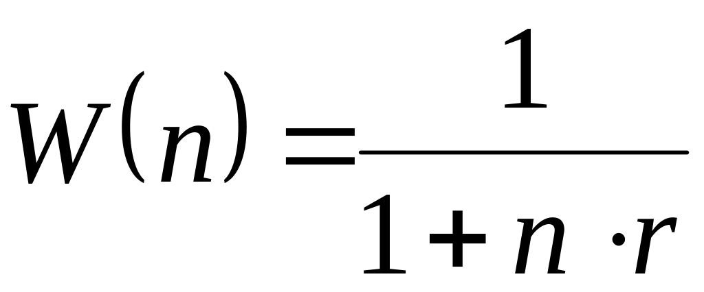 - •Дисконтування при простих відсотках здійснюється за допомогою формули, яка виходить шляхом звернення (3):