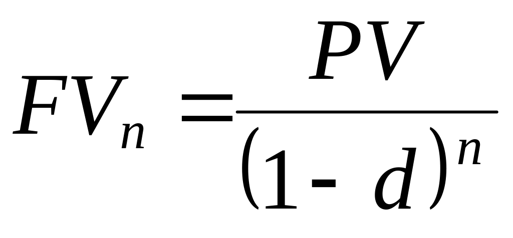 Формула для нарощення з використанням облікової ставки виходить шляхом звернення формули для дисконтування: