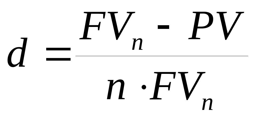 Формулу для облікової ставки отримаємо за аналогією в формулою для відсоткової ставки. Для процентної ставки з формули (3) отримаємо:
