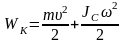 Полная кинетическая энергия катящегося тела равна сумме кинетической энергии поступательного движения центра масс тела и кинетической энергии вращательного движения тела относительно центра масс, так как качение тела является суперпозицией этих двух движений:
