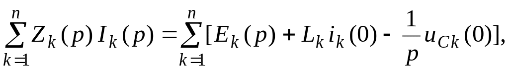 Уравнение (9.12) выражает второй закон Кирхгофа в операторной форме: алгебраическая сумма изображений напряжений в замкнутом контуре равна алгебраической сумме э.д.с. в этом контуре.