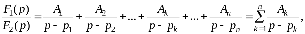 В большинстве случаев при расчёте переходных процессов операторным методом изображение искомой величины имеет вид правильной