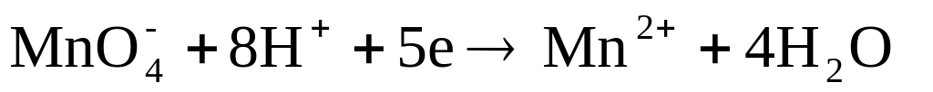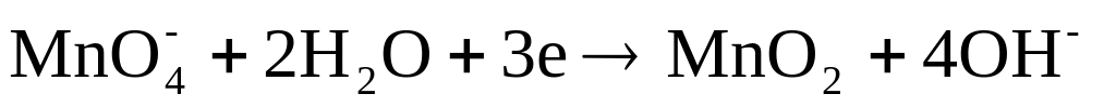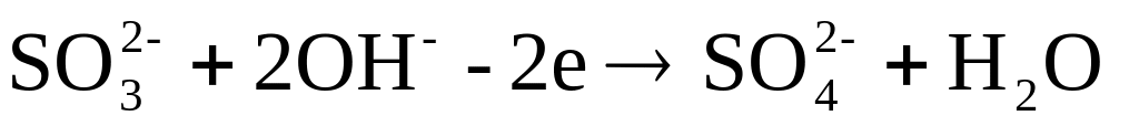 Нестача кисню у лівій частині електроно-іонного рівняння попов-нюється у кислому та нейтральному середовищах киснем з молекул води, при цьому утворюються іони водню, в лужному середовищі — за рахунок гідрок-сид-іонів з утворенням молекул води. Наприклад: