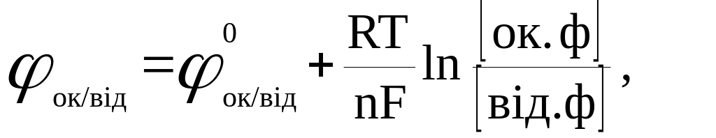 Окисно-відновна здатність речовин характеризується окисно-відновним потенціалом, який визначається за формулою Нернста:
