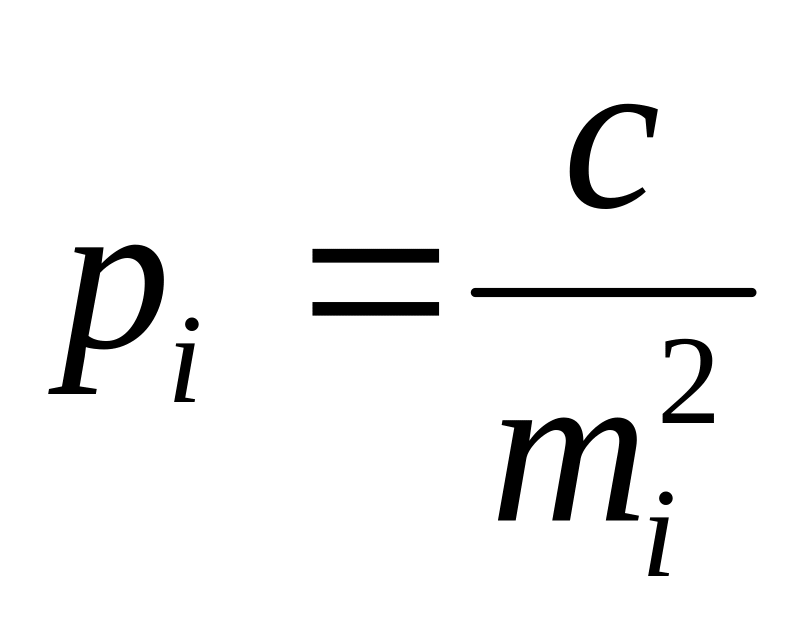 p1 = c / m12 , p2 = c / m22 , ..., pn = c / mn2.