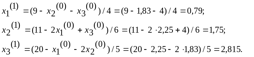Вычисляем первое приближение по формулам (12), подставляя в них начальное приближение (13).