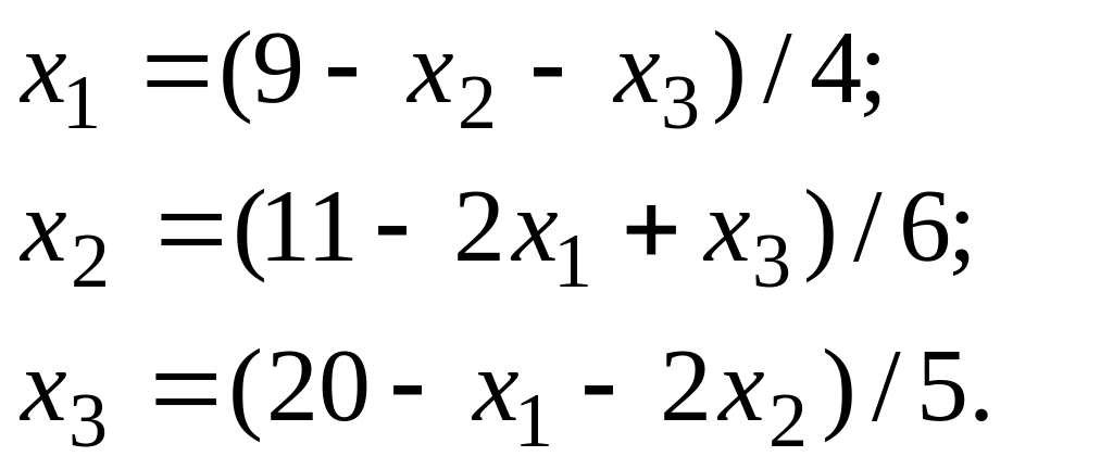 Зададим начальное приближенное решение системы, т.е. начальное приближение. Обычно в качестве начального приближения берется столбец свободных коэффициентов системы (12), т.е.