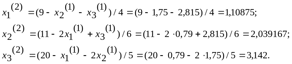 Вычисляем второе приближение по формулам (12), подставляя в них первое приближение (14).