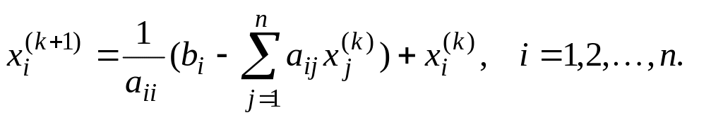 Выполнение условий (10) обычно принимается за критерий окончания итерационного процесса поиска решения. Метод простой итерации эффективен для решения систем линейных алгебраических уравнений с матрицей ленточного типа.