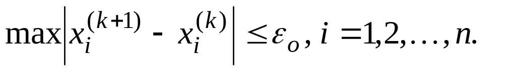- •Итерационный процесс поиска решения системы завершается, если выполняются условия (10).