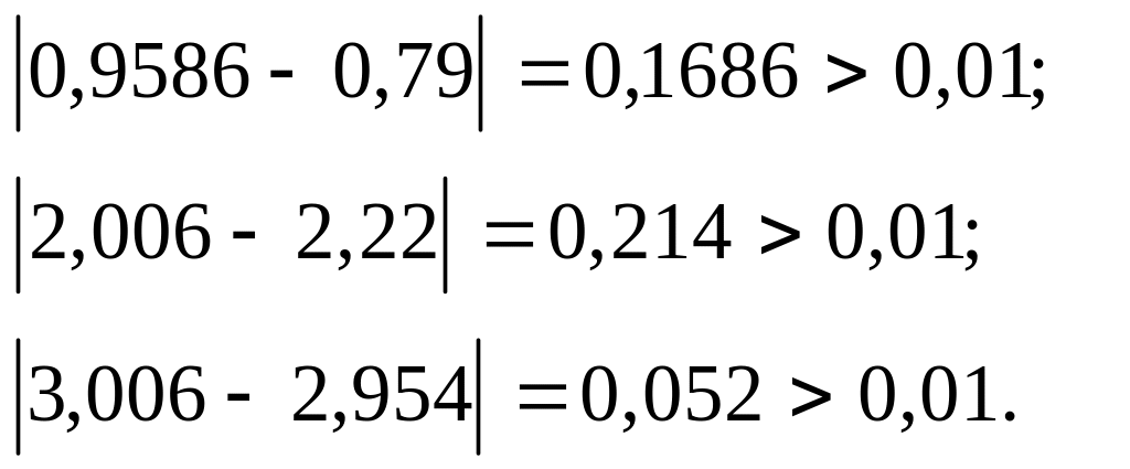Требуемая точность вычислений еще не достигнута, т.е. необходимо продолжать вычислять следующие приближения.
