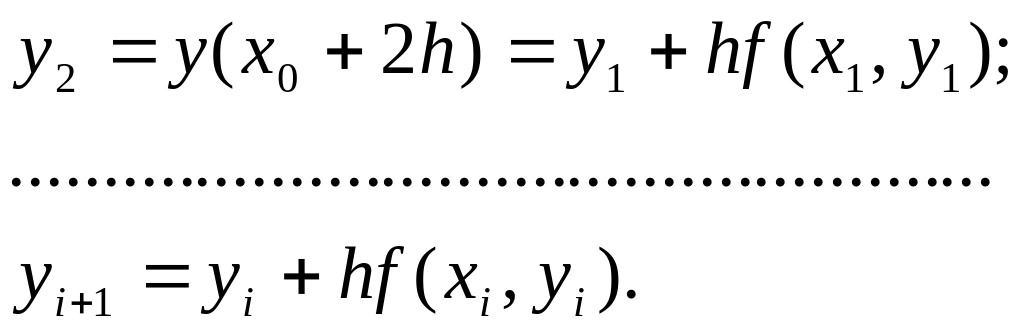 Решение. Запишем расчетную формулу метода Эйлера: