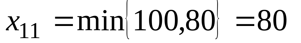 Заполнение таблицы начинаем с клетки (1,1), которая находится в северо-западном углу таблицы, отсюда и название метода.