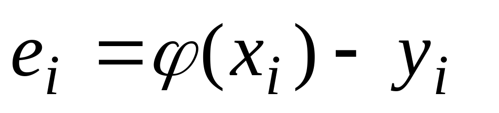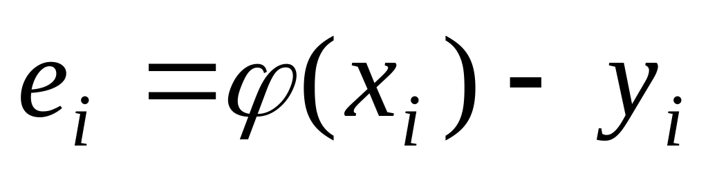 записывается разность между значениями аппроксимирующей функции и таблично заданной функции