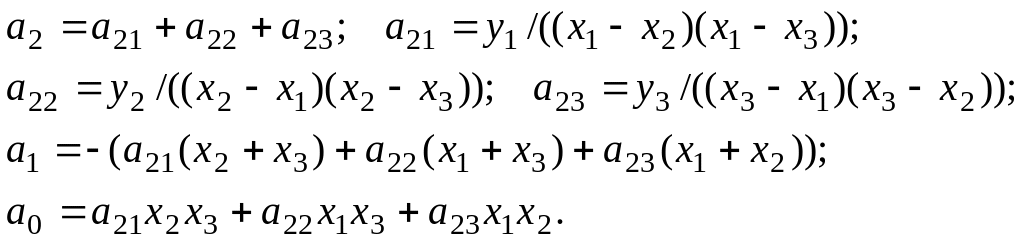 Записать интерполяционный многочлен Лагранжа с конкретными значениями коэффициентов и полученное значение функции .