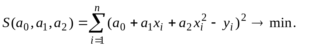 в методе наименьших квадратов минимизируют сумму квадратов отклонений по всем таблично заданным , т.е.