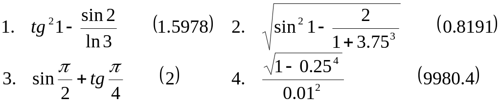 Поскольку вы уже знакомы, по крайней мере, с одним языком программирования, такая запись арифметического выражения должна быть вам понятна без комментариев. Заметим только, что, если вы учились программировать на Бейсике, то запись операции возведения в степень с помощью “крышечки” (^) вам знакома. А если ваш первый язык программирования FORTRAN, в котором возведение в степень записывалось двумя звездочками (**), придется сменить привычки.
