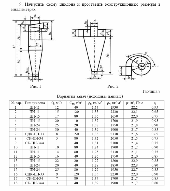Для расчета циклона необходимо иметь следующие исходные данные: