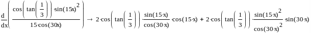 СОВЕТ Внимательно следите за положением открывающих и закрывающих скобок! Вводите их так, как делали бы вы, решая пример на бумаге. Не забудьте поставить большие скобки после знак дифференцирования и в конце выражения, подвергающемуся дифференцированию (выделены кружками).