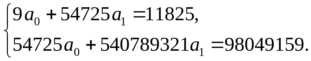Згідно МНК із системи нормальних рівнянь (4.4) маємо систему нормальних рівнянь