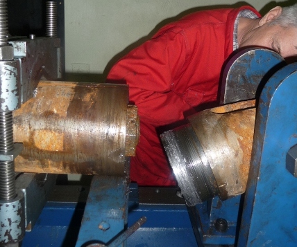 При ремонте ствола производят восстановление смятой или забитой конической резьбы, ремонт внутренней резьбы под нажимную гайку манжетного сальника, а также поверхности ствола в месте резьбы верхнего и нижнего масляных сальников. Коническую резьбу ствола восстанавливают подрезкой торца ствола и нарезанием новой резьбы.
