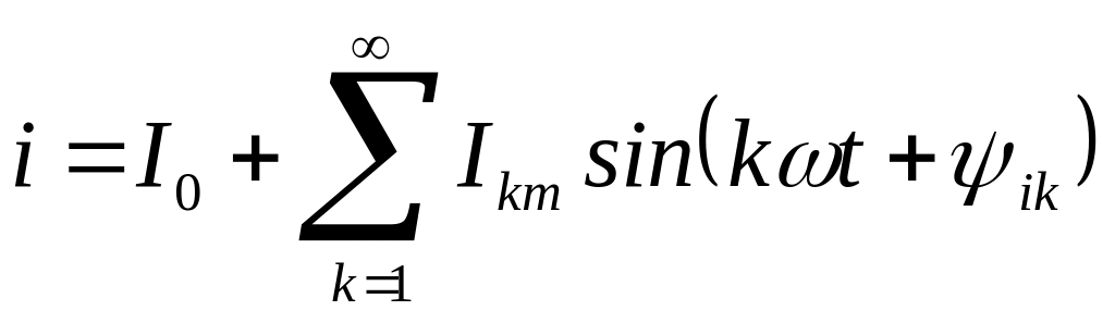 Если периодическая несинусоидальная функция задана аналитическим выражением, то действующее и среднее значения определяются непосредственно на основании интегральных соотношений (5.6) – (5.8). Если же периодическая несинусоидальная функция представлена в виде разложения в тригонометрический ряд, то действующее значение может быть найдено по формуле