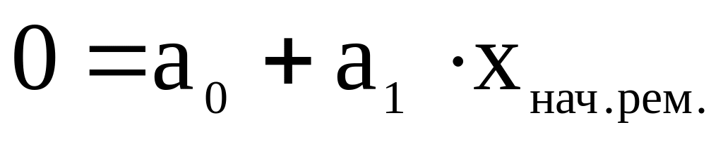 10) Теоретически и графически определим время начала необходимости капитального ремонта оборудования (хнач. рем.) по уравнению (3) при уx=0: