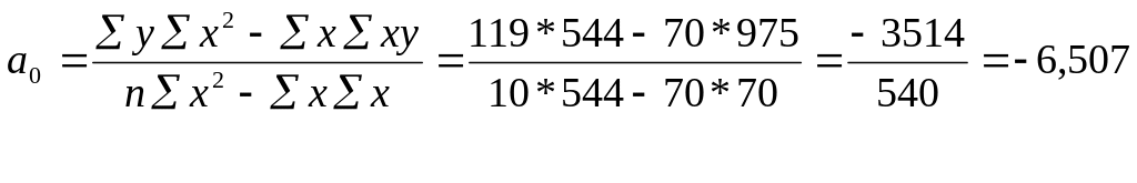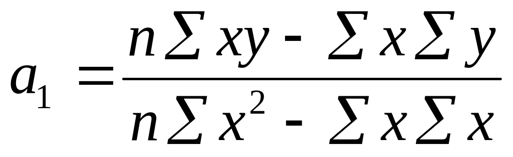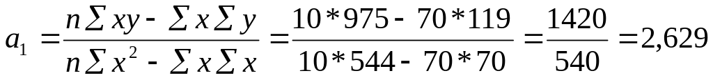Параметры a0 и а1 можно определить также и путем подстановки соответствующих сумм в уравнение (4) по данным таблицы 1.
