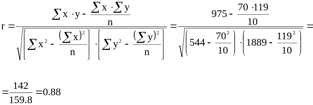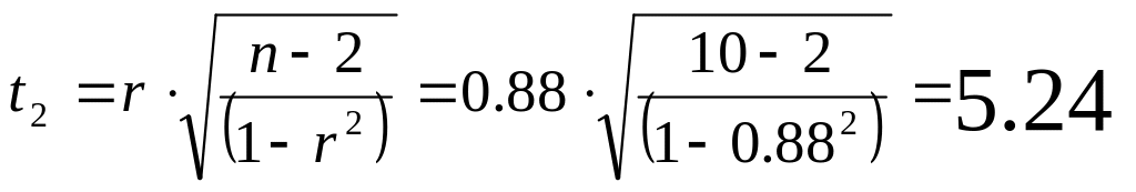 коэффициента корреляции r=0.88