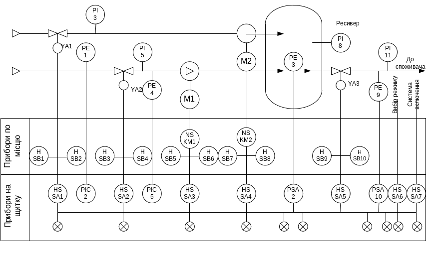 Функціональна схема автоматизації пнемосистеми наведена на рис. 7.2.