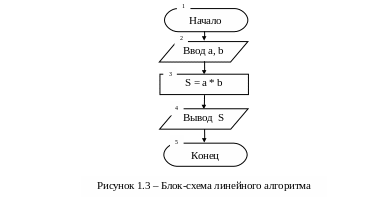 Пример 1. Составить блок-схему алгоритма и написать программу вычисления площади прямоугольника по двум его сторонам.