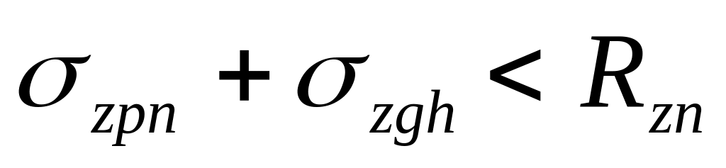 де Rzn - розрахунковий опір підстиляючого просадкового шару ґрунту; σzpn - додаткова напруга на межі "піщана подушка -підстиляючий шар"; σzgn - тиск від ваги ґрунту на рівні "подушка - підстиляючий шар".